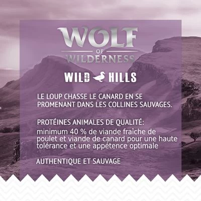 Offre limitée : pour l’achat d’1 paquet de 12 kg de croquettes Wolf of Wilderness, vous recevez 2,4 kg supplémentaires en cadeau ! Croquettes premium sans céréales, basées sur l’alimentation naturelle du loup.