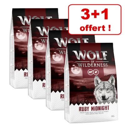 Pour tout achat de 3 kg de croquettes Wolf of Wilderness pour chien, vous recevez 1 kg de croquettes supplémentaires de la même saveur en cadeau !