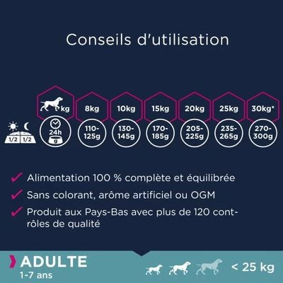 - croquettes pour les chiens adultes de petites et moyennes races (< 25 kg)