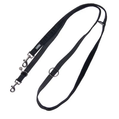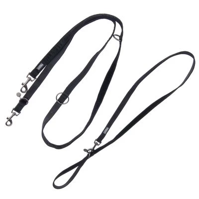 La laisse de 200 cm dispose de 2 mousquetons et de 3 anneaux permettant d’ajuster sa longueur.