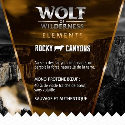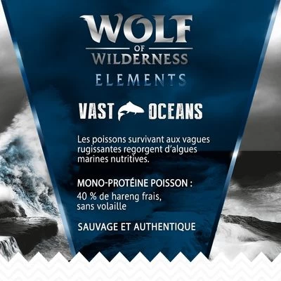 Caractéristiques des croquettes Wolf of Wilderness « Elements » 2 x 12 kg pour chien :