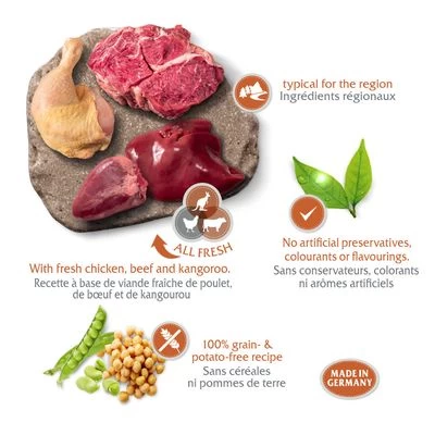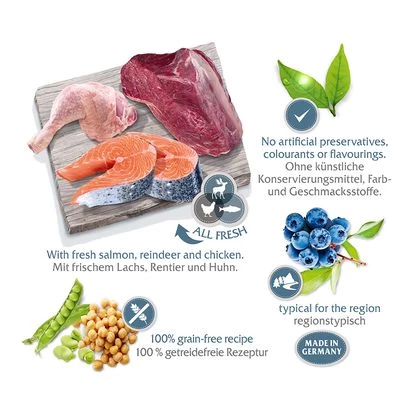 Une double dose de nature ! Croquettes sans céréales pour chien adulte : recettes adaptées et basées sur l’alimentation naturelle du loup au Canada, en Scandinavie ou en Méditerranée.