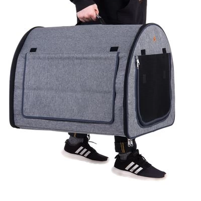 Niche de transport confortable pour chien : en vacances ou à la maison, offre un endroit idéal pour se reposer, avec des armatures métalliques, pliable, existe en plusieurs tailles, coloris : gris.