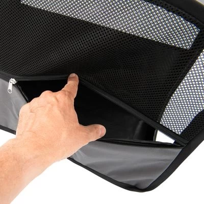 - grande entrée : pour un accès facile, fermeture à glissière, empiècement en filet qui s’enroule et se fixe à l’aide de scratchs