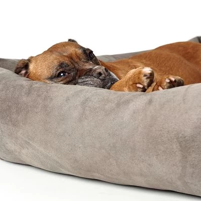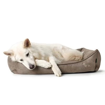 Ce panier rectangulaire possède une housse résistante en cuir alcantara au toucher doux et velouté. Ce matériau a l’avantage de ne pas se froisser, d’être antistatique et très résistant. Le coussin est solidement cousu afin qu’il ne glisse pas et garantit ainsi un maximum de confort à votre chien. Il possède également un rebord surélevé et moelleusement rembourré, et son entrée est abaissée pour permettre à votre chien d’y accéder facilement.