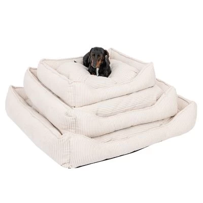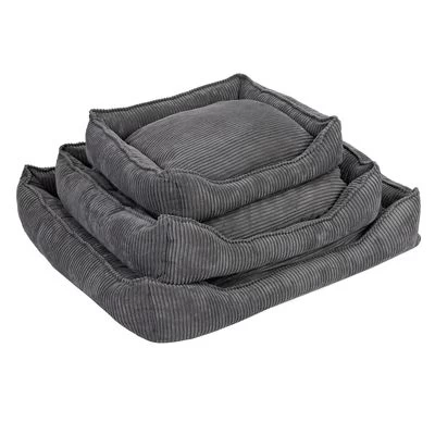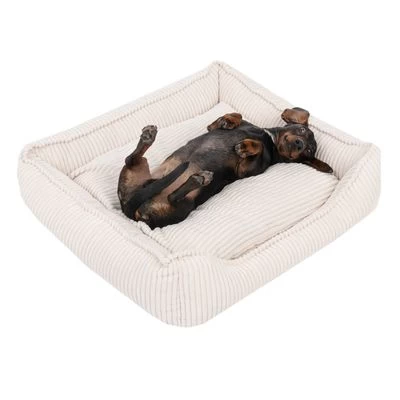 Panier confortable pour chien, joli velours côtelé, convient aussi pour les chiens qui ont les articulations douloureuses, garni de mousse à mémoire de forme, housse amovible. Coloris : gris ou beige