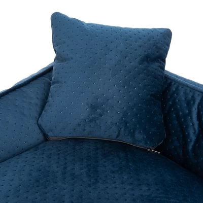 Panier confortable pour chien, coussin rĂ©versible moelleusement rembourrĂ© et petit coussin pour reposer sa tĂȘte, tissu doux et satinĂ©, fond antidĂ©rapant, haut rebord, entrĂ©e abaissĂ©e. Coloris : bleu.