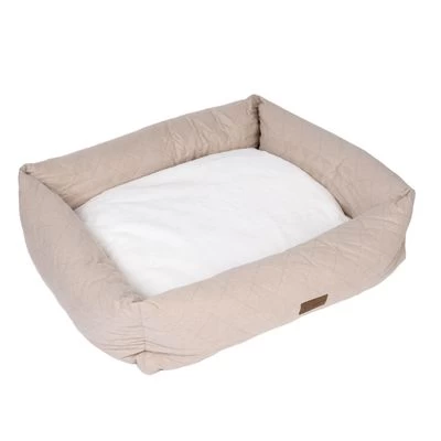 Couchage confortable pour chien, coussin réversible pratique, surface de couchage rembourrée, coussin amovible pour nettoyage facile, rebords épais pour reposer sa tête, antidérapant, lavable en machine, beige