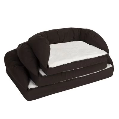 Panier à haut rebord et entrée rehaussée, avec Memory Foam, soulage les articulations pour un sommeil réparateur et sans douleur. Idéal pour les chiens âgés. Housse amovible.