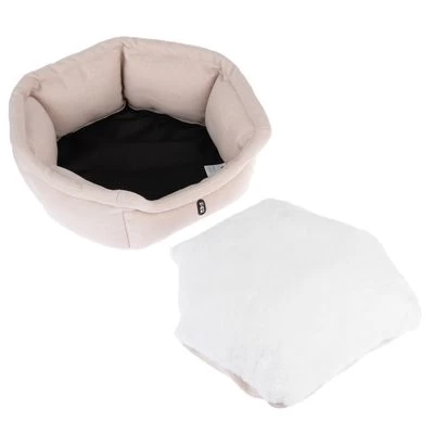 Joli panier pour chat, convient aussi aux chats âgés et malades, joli coussin réversible avec housse lavable, rembourrage dense, bord surélevé comme appuie-tête, protège de la lumière. Coloris : beige / blanc