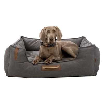 Joli panier pour chien, issu de la collection « BE NORDIC », grand motif de boussole, solide housse amovible, rembourrage confortable en mousse, entrée abaissée. Coloris : gris foncé