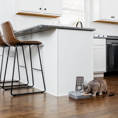 Le ventre de votre animal grogne mais vous n’êtes pas à la maison ? Pas de panique, il ne risque pas de mourir de faim ! Le distributeur automatique de nourriture PetSafe® vous permet de planifier deux repas jusqu’à 24 heures à l’avance et permet à votre animal de recevoir son repas en temps et en heure.
