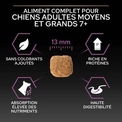- croquettes adaptées pour les chiens âgés de 7 ans qui pèsent au moins 10 kg