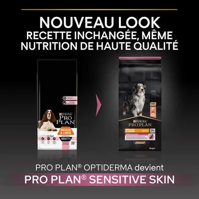 Les besoins de votre chien changent avec l’âge. Les croquettes PURINA PRO PLAN Medium Large Adult 7+ Sensitive Skin (anciennement : OPTIDERMA) possèdent des sources de protéines sélectionnées et une recette spécialement formulée pour les chiens âgés de moyennes et grandes races. Idéal pour tous les jours, cet aliment couvre les besoins en nutriments des chiens âgés.