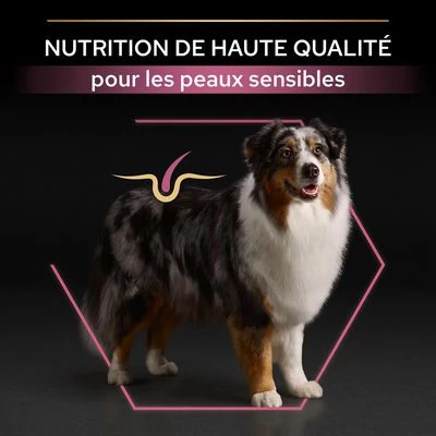 Aliment complet pour chien âgé dès 7 ans de moyenne et grande race (dès 10 kg) à la peau sensible, sans gluten de blé, sources de protéines sélectionnées, riche en acides gras oméga 3. Anciennement : OPTIDERMA