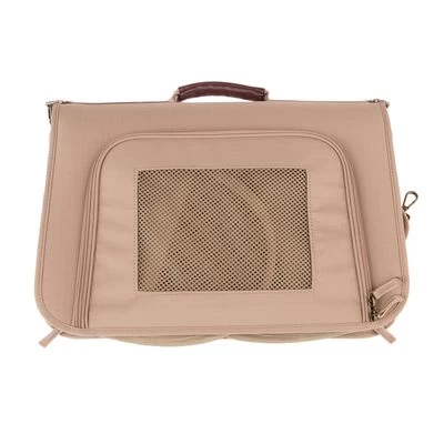 Sac de transport de qualité pour chat et petit chien jusqu’à 5 kg, entrée par l’avant ou sur le côté, filets sur 3 côtés, coussin amovible, laisse courte, s’adapte sur une valise. Coloris : beige/kaki