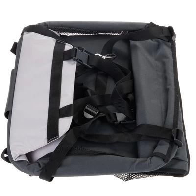 La structure stable du panier offre un maximum de sécurité, même en cas de virage ou de freinage prononcés. Une petite laisse à mousqueton empêchera votre animal de sauter hors du panier. Le fond amovible et la face arrière sont rembourrés en mousse pour offrir un maximum de confort à votre chien, même en cas de longs trajets. Détail pratique : la partie avant du panier comporte plusieurs rangements (4 poches, dont 1 zippée) pour avoir toujours vos accessoires utiles sous la main. Une fois arrivés, vous pourrez utiliser le siège de voiture Booster comme panier de transport ou le plier pour le ranger.