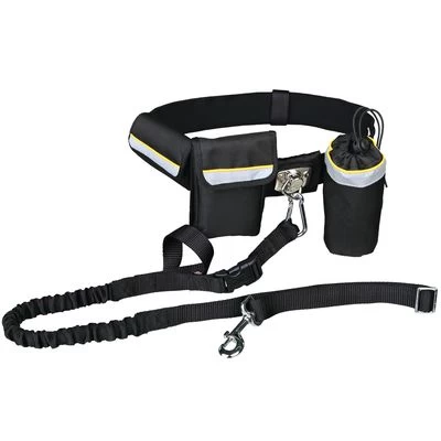 Faire son jogging et se promener en même temps, c’est maintenant possible grâce à la laisse très pratique Hands Free Leine réglable au niveau du ventre.